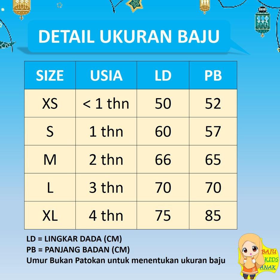 Untuk perkiraan umur jangan dijadikan patokan utama, karena bentuk dan . "size chart gamis anak sesuai usia untuk konsultasi baby nya . Berikut tabel ukuran baju gamis anak perempuan dari size 1 sampai dengan size 10. Aini adalah baju muslim anak perempuan untuk balita dan remaja.